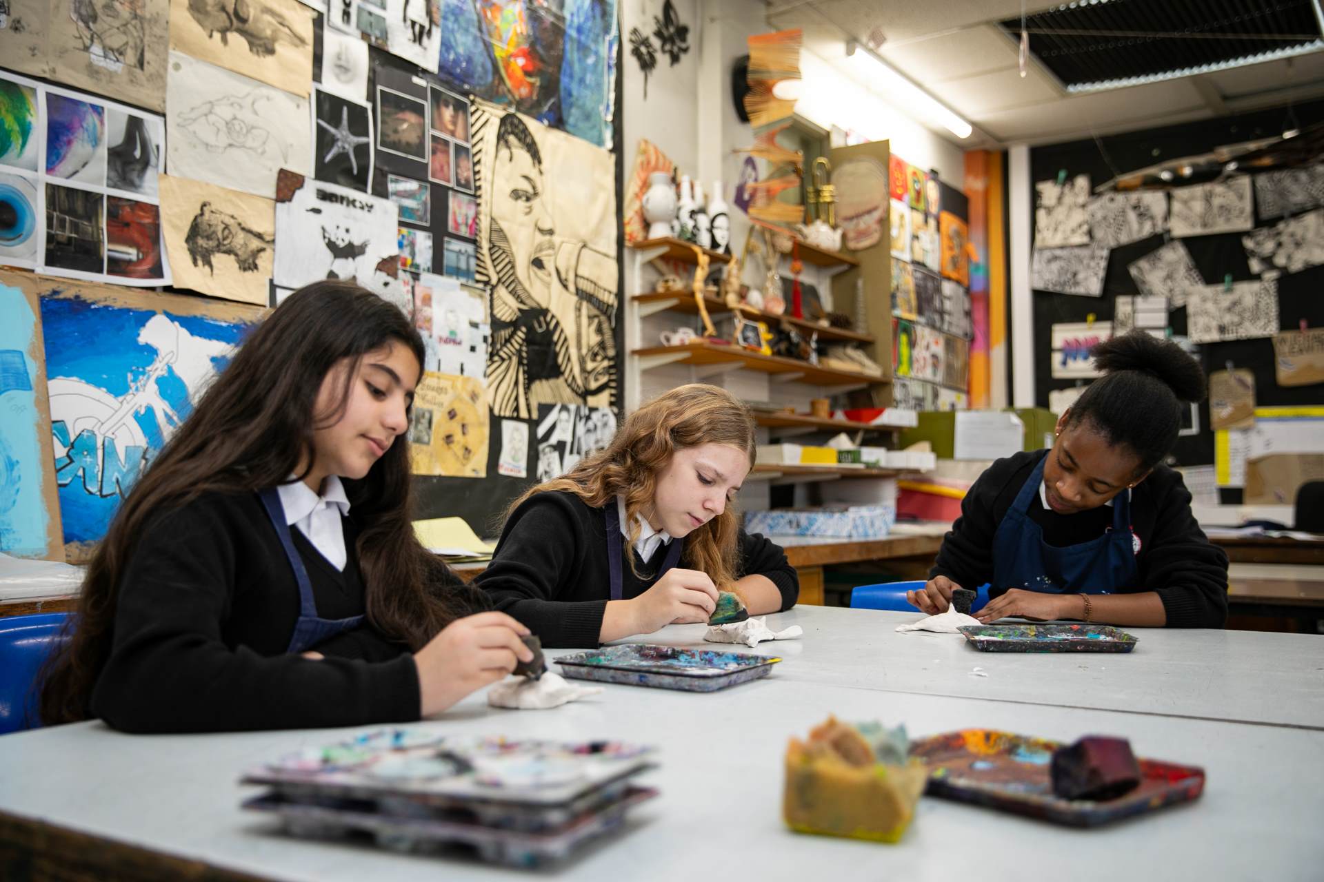 Students will explore and experiment with a wide range of media and processes which will include: Drawing, Painting, Printmaking, Collage, Digital Photography, ICT, Textiles, Ceramics, Mixed-Media and Sculpture. They will learn to investigate a theme thoroughly using sketchbook practice and analyse the work of relevant artists to inform creative decisions. They will develop a range of ideas based upon a set theme, experiment with appropriate techniques and evaluate the creative process throughout.