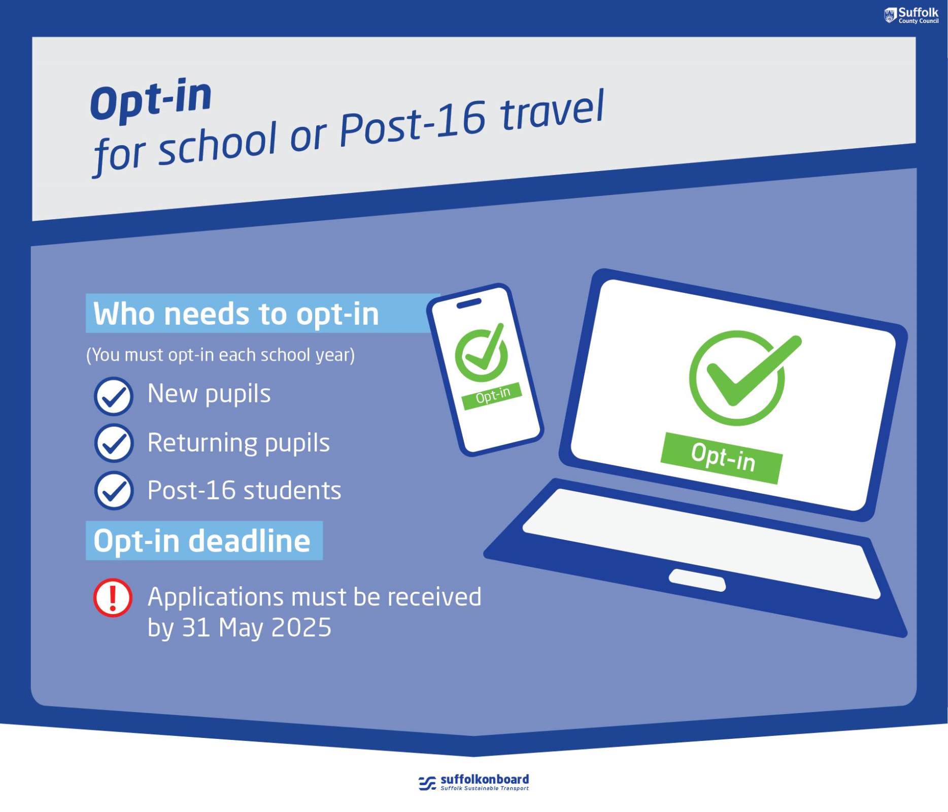 Please visit www.suffolkonboard.com/schooltravel for all the latest information on school transport.